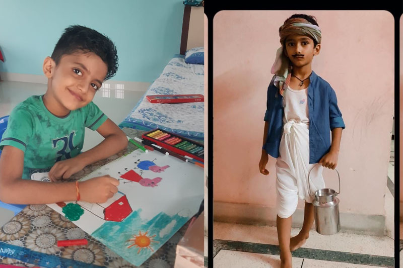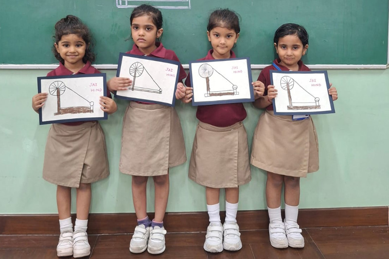 Students enacted a skit based on the truth and non-violence message of Bapu. Small children celebrated