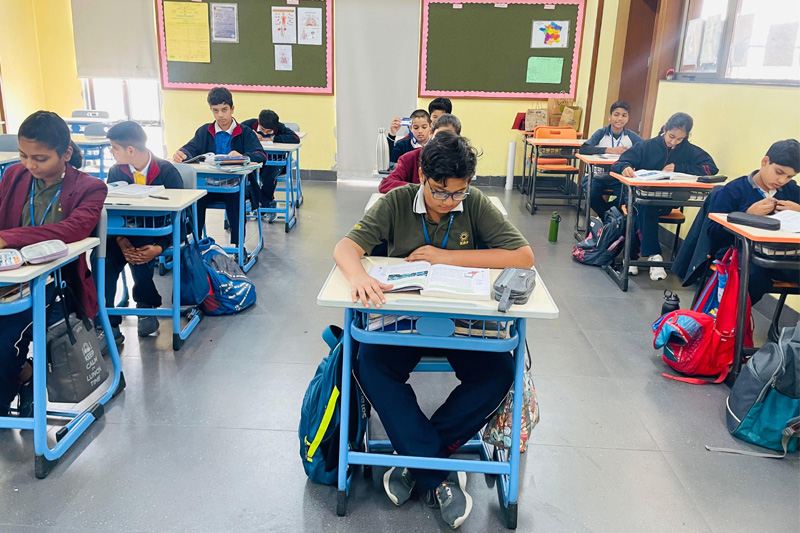 The Middle School English language programme stresses the basic skills of reading, writing, spelling, grammar and vocabulary, as well as creative writing and an appreciation of literature. Students are led to read independently and write in various literary formats as well as imbibe fluency in communication. Hindi is taught as the second compulsory language up till Grade VIII. Students are given a choice from amongst Sanskrit and French as the third language from Grade VI along with English and Hindi.
